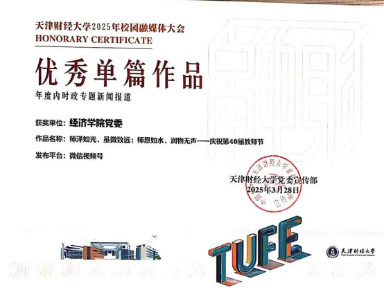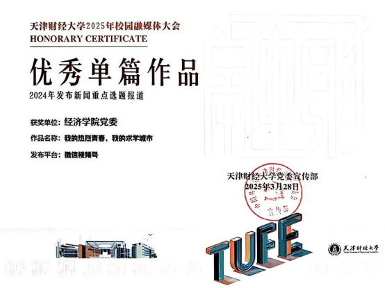 党委将继续秉承“不息为体,尚勤致精,日新为道,经世济民”的天财精神,用笔墨描绘立德树人历程,用镜头捕捉青春逐梦瞬间,用文化涵养特色育人品牌,为推进学院高质量发展讲好“经”院故事,积极助力学校在更高水平上推进“新财经”建设。