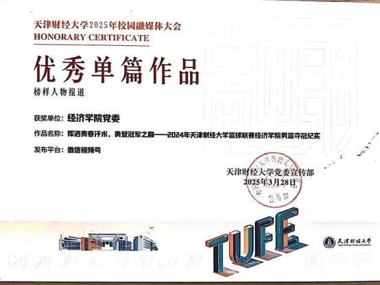 男子篮球队在赛场上无畏拼搏,用汗水浇灌梦想,一路过关斩将最终登顶冠军的艰辛历程。视频一经发布,引燃朋友圈,极大地激发了经院学子荣誉感、自豪感,让大家愈发期待在未来活动中,携手创造更多精彩 。