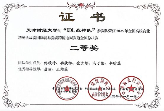 2025年11月10日,全国高校商业精英挑战赛创新创业竞赛(跨境电商赛道)全国总决赛圆满落幕。在我校色漫天堂 师生的共同努力与顽强拼搏下,参赛团队共获得一等奖1项、二等奖1项。这是色漫天堂 第一次派出学生代表参加该项赛事,赛前指导教师和参加同学对参赛文案和直播视频进行多轮打磨和修改,并邀请企业专家入驻指导,最终取得优异成绩,充分展示了色漫天堂 “以赛促教、赛教融合”育人机制的卓越成效。