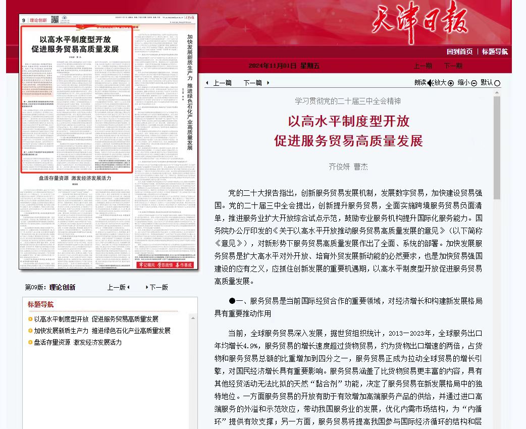 齐俊妍、曹杰文章“以高水平制度型开放 促进服务贸易高质量发展”。