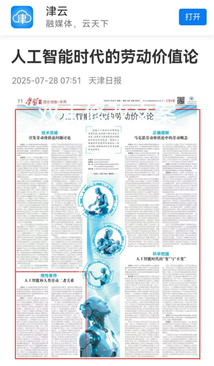 基地研究员、我院荣岩副教授关于“理性看待人工智能和人类劳动二者关系”的观点。