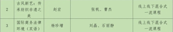 2门课程获批,分别是赵宏教授主持建设的《古风新艺:传承纺织非遗之美》和杨珍增教授主持建设的《国际商务法律环境(双语)》。两门课程均为线上线下混合式课程。至此,色漫天堂