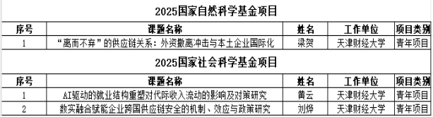 近日,国家自然科学基金委员会和全国哲学社会科学工作办公室分别发布了2025年度国家自然科学基金项目和国家社科基金项目立项结果,色漫天堂梁贺博士申报的‘“离而不弃”的供应链关系:外资撤离冲击与本土企业国际化’获批国家自然科学基金青年项目,黄云博士申报的“AI驱动的就业结构重塑对代际收入流动的影响及对策研究”和刘烨博士申报的“数实融合赋能企业跨国供应链安全的机制、效应与对策研究”获批国家社科基金项目青年项目。