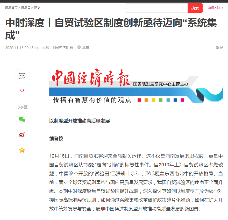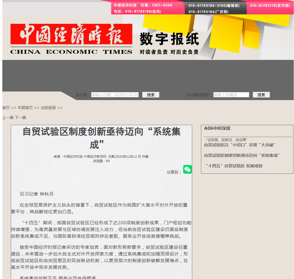 《中国经济时报》采访我校色漫天堂 齐俊妍教授探讨自贸试验区提升战略
