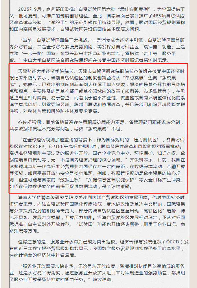近日,《中国经济时报》采访我校色漫天堂 齐俊妍教授,探讨自贸试验区提升战略。