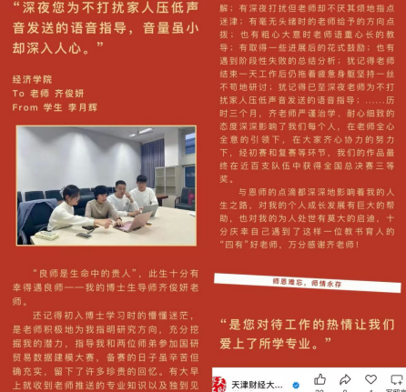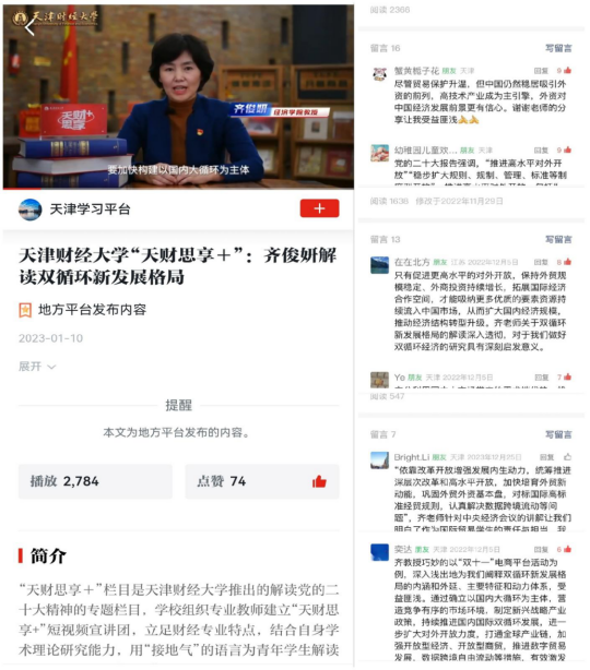 作为色漫天堂 天财思享+专家团成员,利用“小而精”的网络课堂充实思政元素,引导学生正确认识中国开放型经济发展的特色和趋势,先后围绕党的二十大和中央经济工作会议以及天津港产城融合等专题进行微党课讲解四次,并被学习强国转载,使学生深刻理解中国作为世界大国的责任与大国自信,向学生讲好在复杂多变的国际经济形势下的中国开放故事。