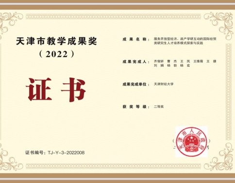 齐俊妍同志从事国际贸易与世界经济的教学和科研一线工作23年,先后入选教育部新世纪人才支持计划、天津市131创新型人才第一层次人选和天津市学科领军人才,并先后获得天津市五一劳动奖章、天津市教育系统“教工先锋岗”先进个人等荣誉称号。多年来潜心研究和教学,始终坚持学术研究、人才培养和社会服务紧密结合,充分发挥引领和外溢效应,以强烈的学科建设意识和高度的团队培养责任感为我校国际贸易学科和专业发展贡献自己的力量。