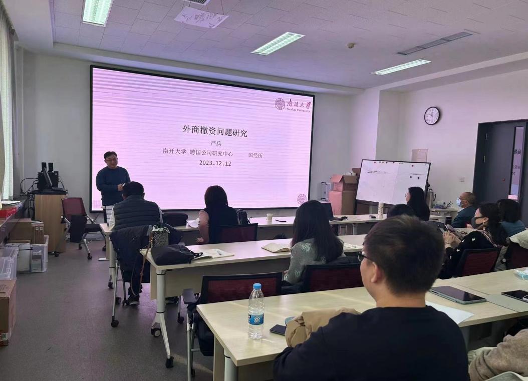 严兵教授以“外商撤资问题研究”为题,主要围绕外商撤资的重要性、外商撤资的识别等主题,结合自身已有研究从环境成本、土地成本、税负等维度深入剖析了外商撤资的原因,从出口和跨国公司布局调整等视角解析了外商撤资的影响。此外,严兵教授还结合自身国家社会科学基金重大项目、教育部人文社会科学重点研究基地重大项目和国家社会科学基金重点项目详细讲解了国家项目申报的要点,对项目选题凝练、申报书撰写、青年教师的科研规划制定给予了老师们针对性的建议。