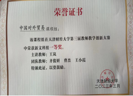 积极参与申报“数字+” 校级重点建设课程6项,并以数字技术和实体经济深度融合为发展方向,升级迭代传统课程,努力建设数字化、智能化、网络化的“数字+”课程。同时积极申报天津市重点教改项目《数字经济背景下国际贸易专业数智化教学新模式的探索与实践研究》和一般项目《一流专业建设背景下国际商务人才新技术素养提升研究》,并及时应用于课程和专业建设。截止目前,《国际贸易理论与实务》课程获批国家一流线上课程,《宏观经济学》、《国际贸易与实务》等四门课程获批天津市一流课程和天津市创新创业教育特色示范课程。《中国对外贸易》等十余项课程获批校级重点课程。“国际贸易实务技能拓展实践基地”等多项教学改革和产学研项目获得教育部立项。主持的“服务开放型经济、政产学研互动的国际经贸类研究生人才培养模式探索与实践”获得天津市教学成果二等奖。同时积极组织教师参加教学大赛,王岚、王维薇、刘欣等教师在天津市教学创新大赛中分别获得二等奖和三等奖。注重人才梯队和培养,在已有教育部新世纪优秀人才支持计划、天津市131创新型人才第1、2、3层次和天津市学科领军人才等基础上,杨勃、曹清峰、赵文涛3位青年教师入选色漫天堂