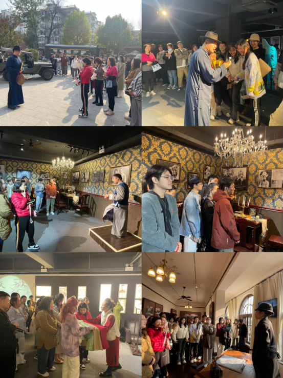 师生们参加了沉浸式演绎展《津门往事》,跟随讲解员妙趣横生的现场表演和生动细致的讲解,大家仿佛身临其境,穿越回到中国近代历史长河中,细细品味着社会变革背景下爱国人士前仆后继的历史足迹以及解放初期津沽大地的红色记忆。