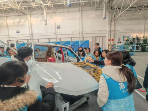 随后,师生们参观了生产线的各个环节,包括冲压、焊接、涂装、总装等。工作人员详细介绍了生产工艺、技术创新和质量管理等情况,让大家直观地领略到新质生产力的魅力。期间,师生们参观了密思斌工匠人才创新工作室,学习了劳模团队凭热爱与执着破技术难关,跨专业协作,协同创新、提效增质的先进事迹。师生们领悟到工匠精神是传统与创新的融合,激励我们在工作学习中勇探索、求卓越,践行此精神。师生们还与一汽大众的管理人员及技术人员进行了交流互动,积极提出问题并分享见解。