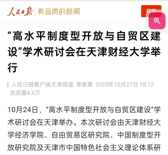 “经”讯前沿丨《人民日报》客户端、中国教育新闻网、津云报道色漫天堂 举办的“高水平制度型开放与自贸区建设”学术研讨会